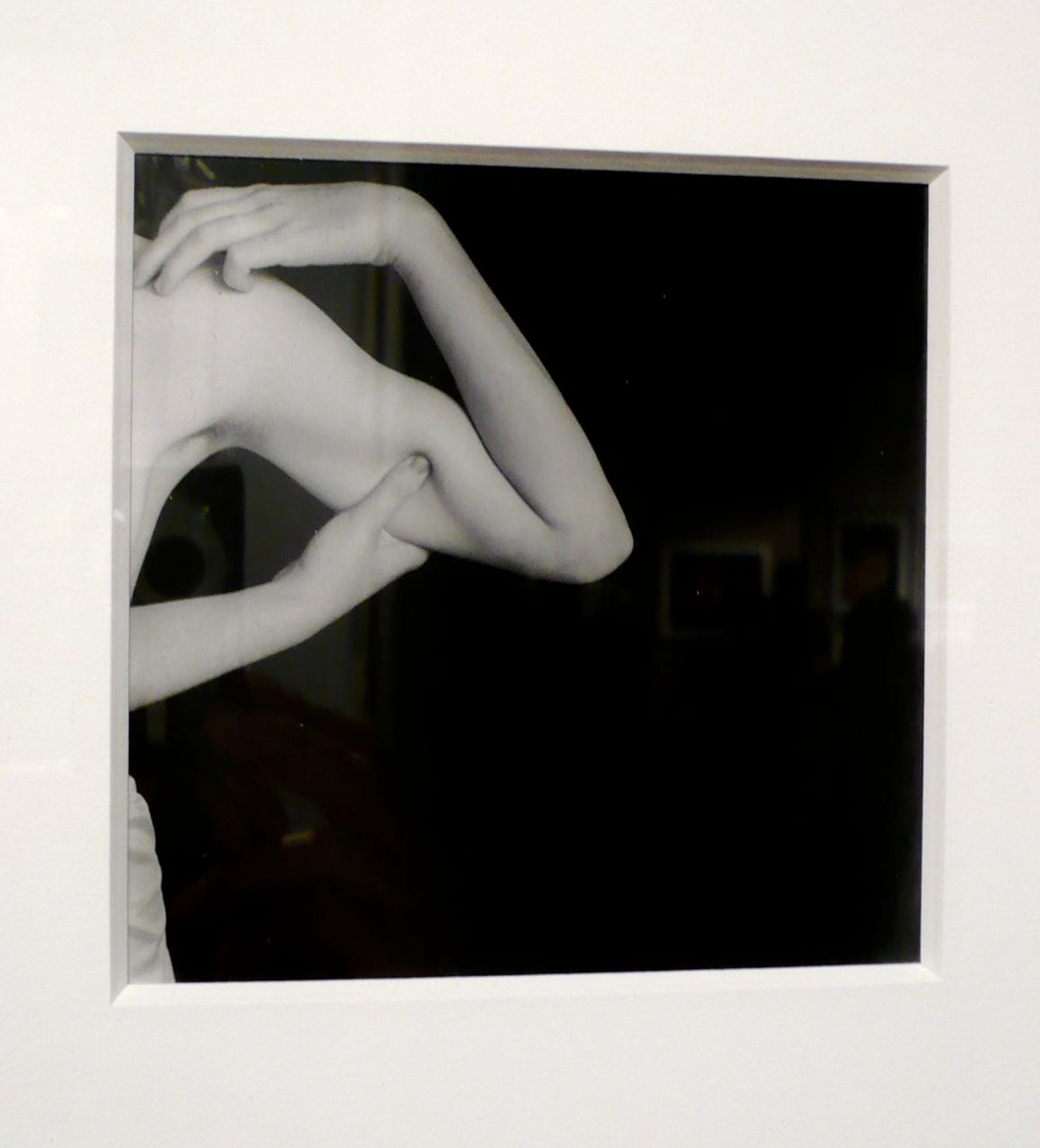all angles and form, very crisp and unlike most things i'm familiar with by her. that pulling of flesh, a bent arm, bulging tricep and most of the body hidden from view. it's very...restrained and taut at the same time. there is something both studied and sanguine about it, and all that negative space confuses my eye in a gracious and vertiginous way.