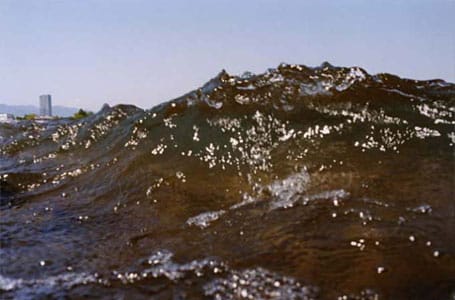 She shot the images beginning in 2000. Outfitting a normal 35 mm Nikon film camera with a waterproof casing, she floated chest deep into waters of her choosing and pointed the camera toward the shoreline, without looking through the viewfinder, often leaving the camera half-submerged in the water. While there is the constant element of chance in such a process, the images that are published and displayed feel honest and true to the experiences of an act that most people, regardless of nationality, have a memory and precise vision of.