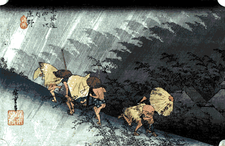 © Ando Hiroshige. Sudden Shower at Shono, #46 in the series of 53 Stations of the Tokaido