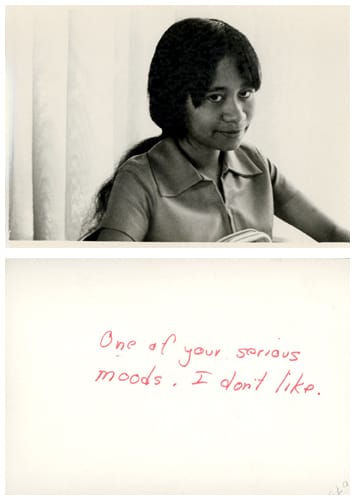 I don't have any other photos of that time with her, though I do have another stolen image (again: semantics) to act as a placeholder. This image I stole--again literally--when I fled the homestead at eighteen, full of righteous anger and purpose, but still feeling homesick even as I was leaving. So I swiped some meaningful photos. It's my mother, at eighteen. The photos were taken by a lovestruck serviceman, who dabbled in photography as a hobby. He wrote captions in red felt-tip on the backs of all the photos. The first time I ever saw these photos, as a teenager myself, I was struck by the fact that I make this exact same exasperated face.