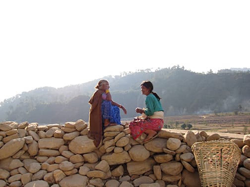 First, a contextual note: on roads winding up mountains we saw for miles and miles the same scene playing itself out. A slight woman or man--but most usually a woman--carrying a basket on her back with a strap that wrapped itself from the basket around the top of her head, with the basket's contents almost certainly weighing as much if not more than the person. In more populated areas we would see the same slight frames carrying impossible loads of other people's luggage, barefoot, up steep hills, all with the same strap around the back reaching to the tops of the bearer's forehead. On the roadsides, the contents were almost always rocks the size of a human head, or dirt. People carrying dirt and rocks were doing so to actually make the roads as we were driving up them. Endlessly, for hours, we would see small collections of humans sitting atop piles of rubble, with small hammers in hand. They were making smaller rocks out of bigger rocks-- literally making gravel to fill the road that they were seated on the side of. So. There were these women and men, and these baskets for carrying heavy things, using one's head as a fulcrum.