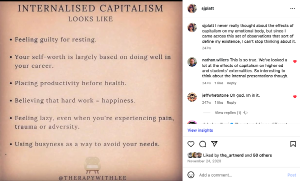 It can feel like we are steeped to our eyeballs within the ruinous effects of end-stage capitalism, but one of those effects that I’ve only recently become aware of is how capitalism is internalized within our emotional bodies.