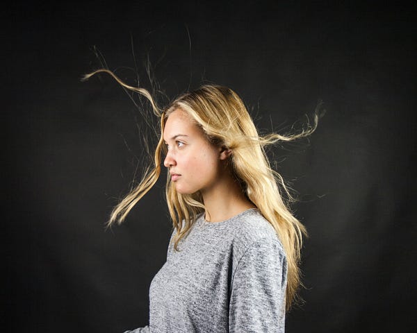When my students are seniors, I put them into pairs and ask them to make a cohesive set of three portraits of their partner. In the first photograph they can only use natural light in the first, only continuous light in the second, and in the third, only strobes. My students are beginners with studio lighting, so the light in each image feels different. To make the work feel like it belongs together, some students latch on to interesting concepts. In one of my favorite student pairings (Amanda Clizbe and Victor Lou), Amanda photographed Victor with a praying mantis on his face (the insect was/is his pet) and Victor photographed Amanda with a fan blowing her hair in a way that was more aggressive than it was “L’Oreal.” Acquaintances before the project, they put up with each other with good humor through it and were friends by the end.