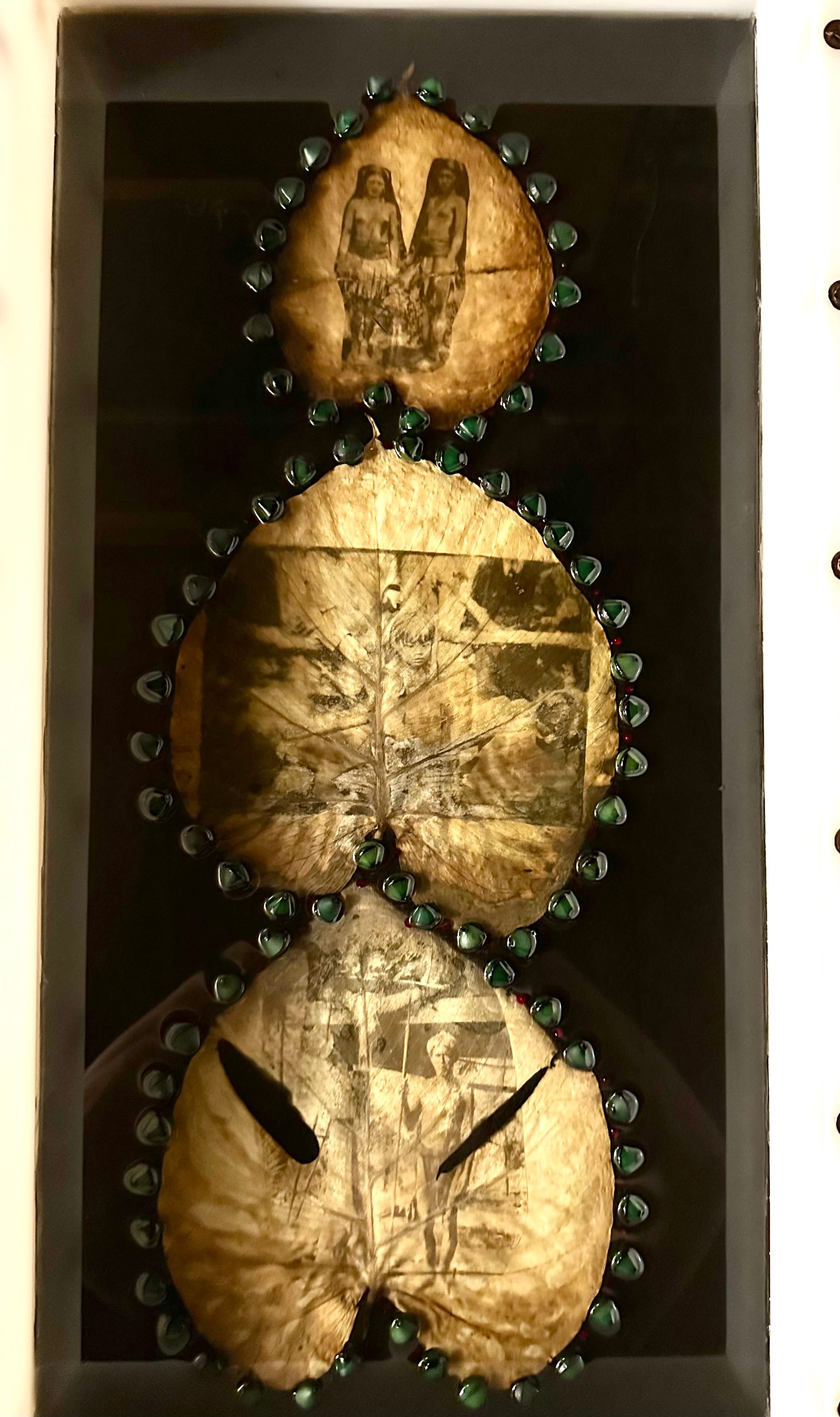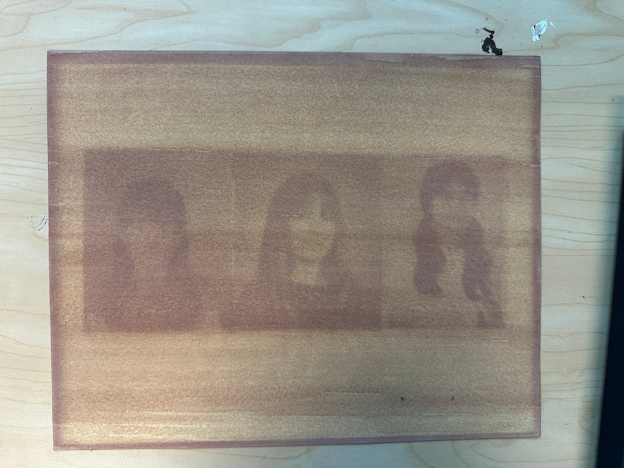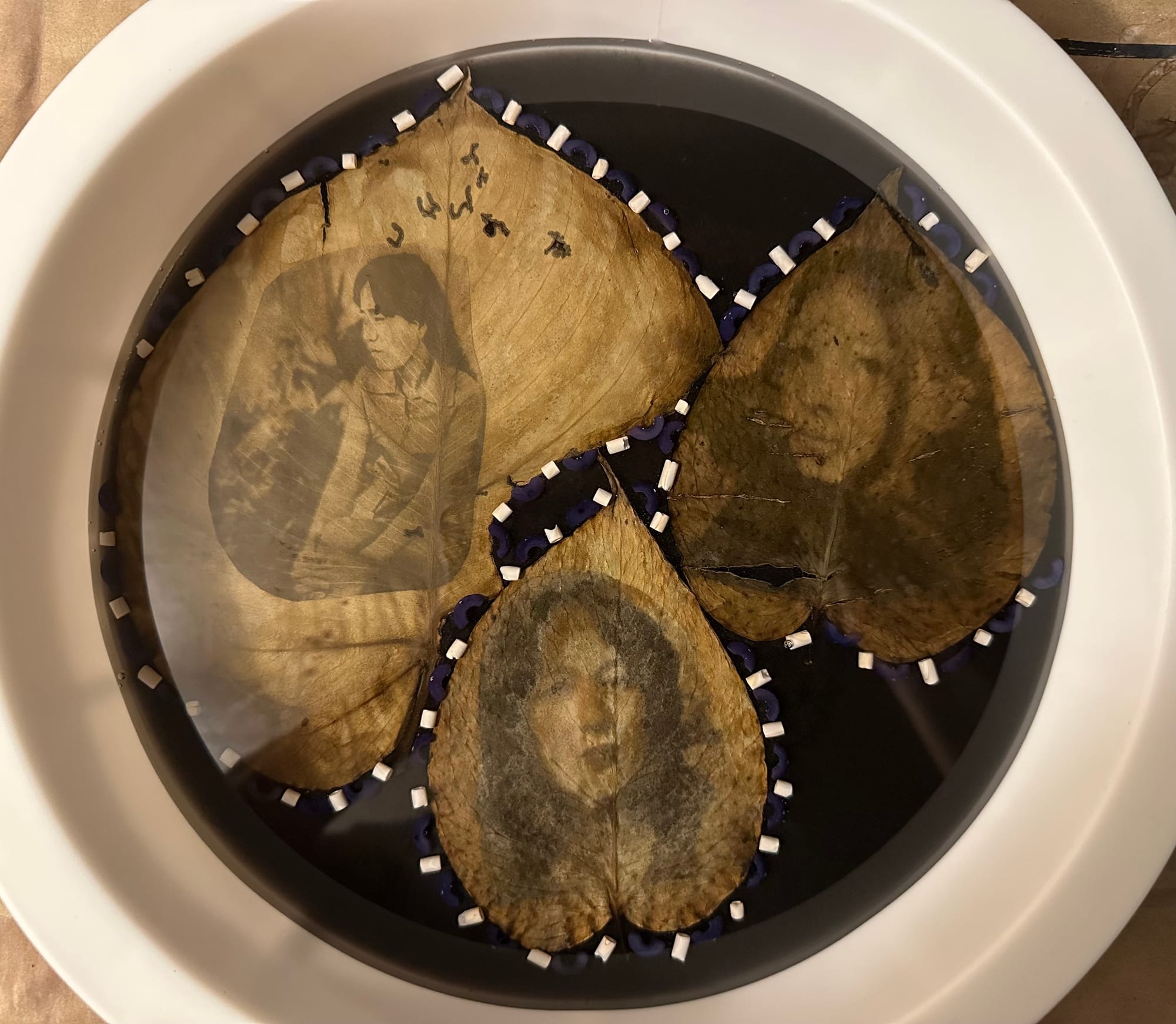 works in progress: chlorophyll prints cast in resin, anthotype with mangosteen.