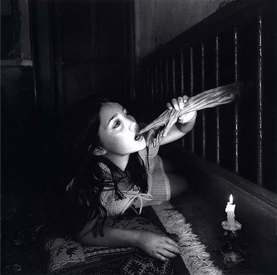 i cannot find much information about this series, and am frustrated, as i often am, about the lack of information concerning newer work by pioneering japanese photographers. what i do know about the series i found in a recent issue of asia art pacific magazine. the review tells that yanagi reconstructs fairytale scenes from western tales as well as from gabriel garcia marquez's erendira. she casts girls between the ages of five to eleven, and records them as both a girl and an old woman. the end result, in the handful of images i've seen (and want desperately to see in person), is chilling, unsettling, and utterly engrossing.